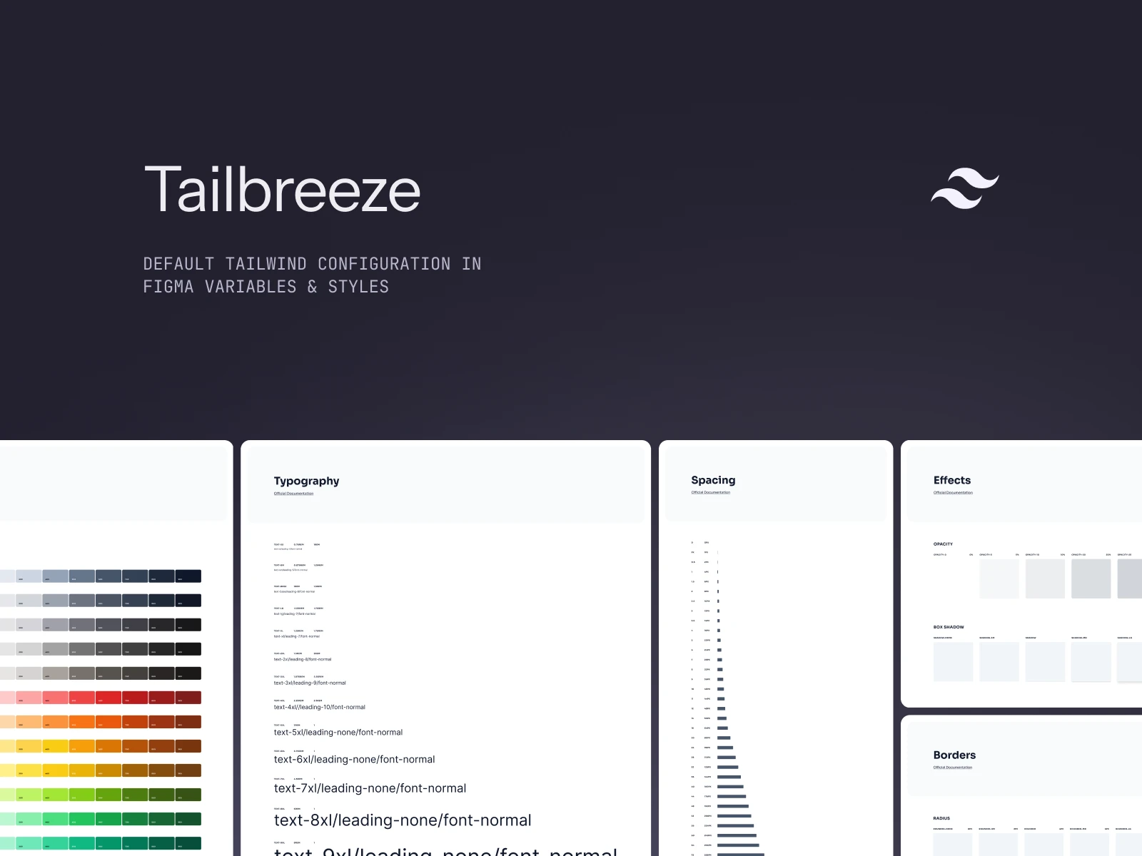 Tailwind's defaults (colors, type scale, spacing, border radius, shadows, and effects) mapped to Figma styles and variables. I use Tailwind extensively and got tired of rebuilding the same foundation every time. Tailbreeze is the starting point I kept needing.